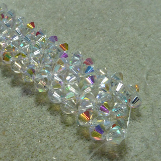 I've just had a commission for a simple and super sparkly bracelet with Clear Crystal AB bicone beads. I thought I'd sit out in the sun today while I was beading. It was all rather dazzling!