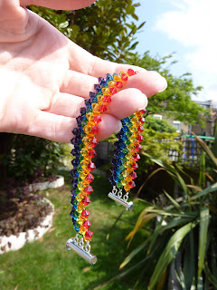 I have been commissioned to make a bracelet from an existing customer. It is to be as close to the full colour spectrum as I can manage and made from Swarovski Crystals so it really sparkles and shines