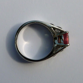 It's official- I've finally got my engagement ring- after waiting for 5 months! It's definitely worth the wait as I love it. Just took some photos of it in the sunny afternoon sun. The padparadscha sapphire looks beautiful and the diamonds are so much more sparkly than they were in the original setting.